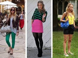 Dicas de misturas: Azul com rosa, amarelo com roxo, vermelho com verde, rosa e amarelo ou somente uma cor só com acessórios coloridos.